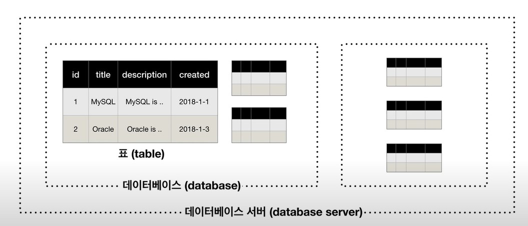 - row, record, 행 : 데이터 하나하나, 데이터 자체